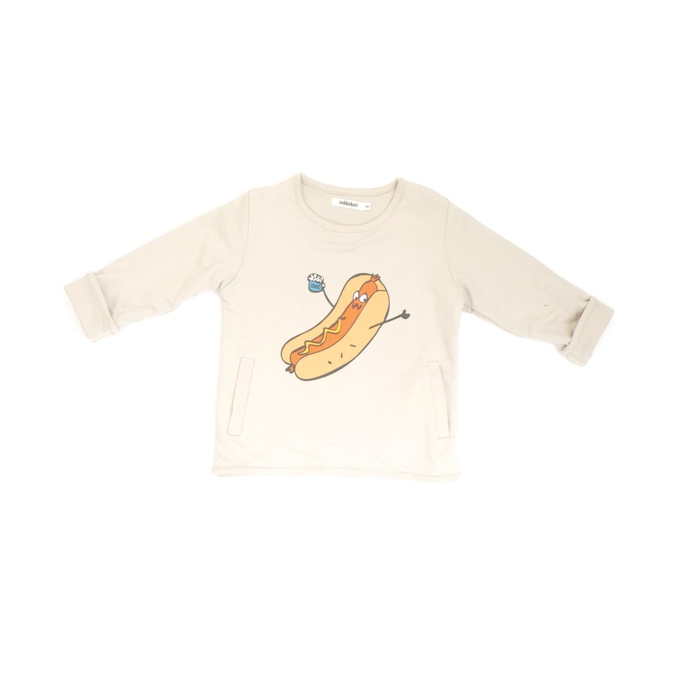Reversible hot dog print sweat in light grey with pockets. Wear inside out for the flag print.
